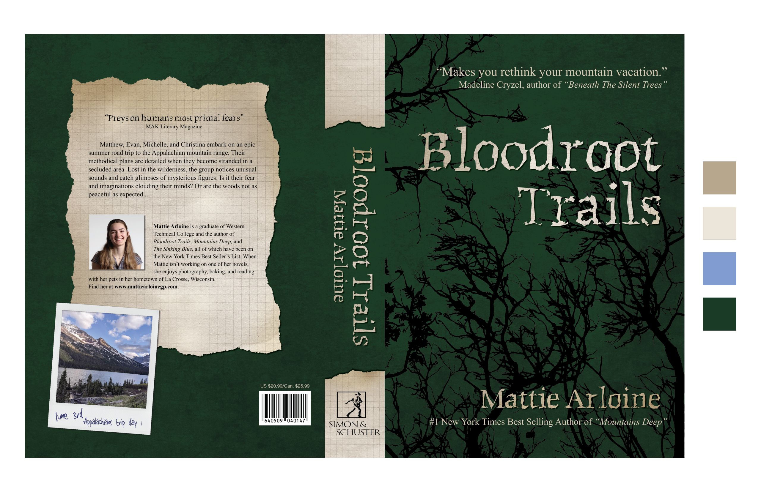 Book cover designsBloodroot Trails is a fake horror adventure novel that I created the concept for and designed the covers of.